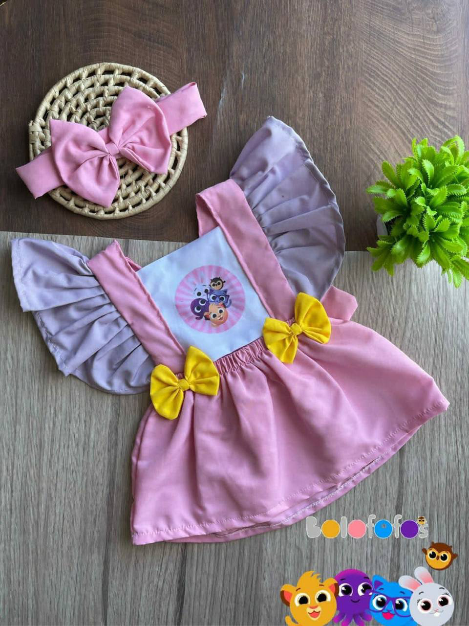 VESTIDO BOLO FOFOS ROSA+ LAÇO DE CABELO